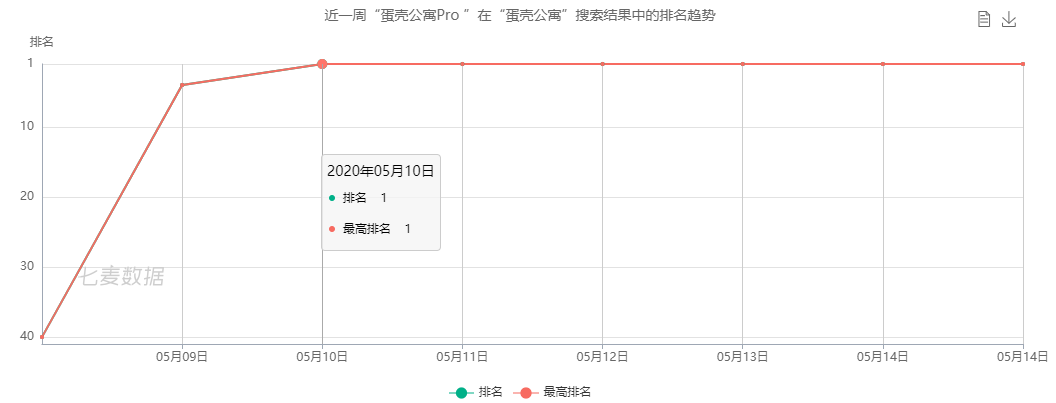 根据“蛋壳公寓”这一关键词的搜索结果排名趋势可以发现,在 5 月 10 日官方对下架一事进行回应后,「蛋壳公寓Pro」在“蛋壳公寓”这一关键词的搜索结果中排名已上升**位,其下载量也在官方公开回应后迅速上升。