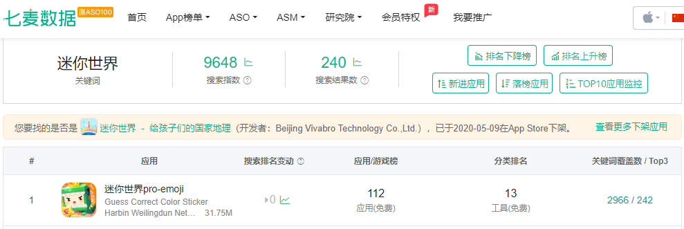 目前,在搜索“蛋壳公寓”或“迷你世界”这两个品牌词时,搜索结果排名*位的都是 Pro 版。