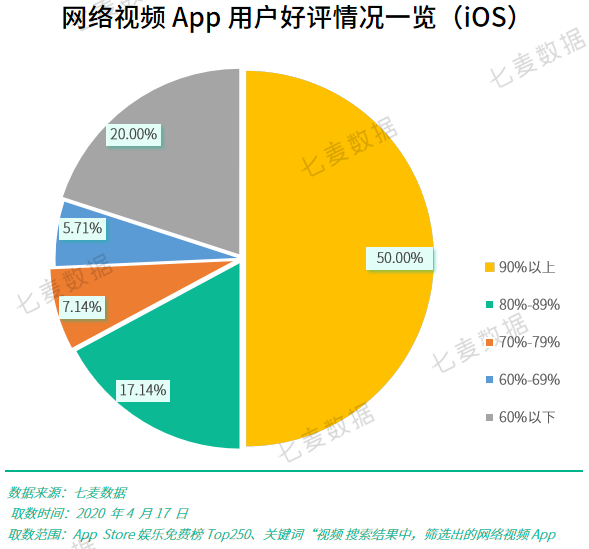 从目前 App Store 中网络视频平台用户好评来看,网络视频 App 整体好评较多,50% App 好评度在 90% 以上,67.14% App 好评度在 80% 以上。这些备受用户好评的平台,主要原因在于影视资源广,可供用户多种选择;平台广告在用户可接受范围内;当然这其中也不乏,有垂直某一类型的细分平台这部分平台专注于某个海外市场的内容,能深度培养优质用户。