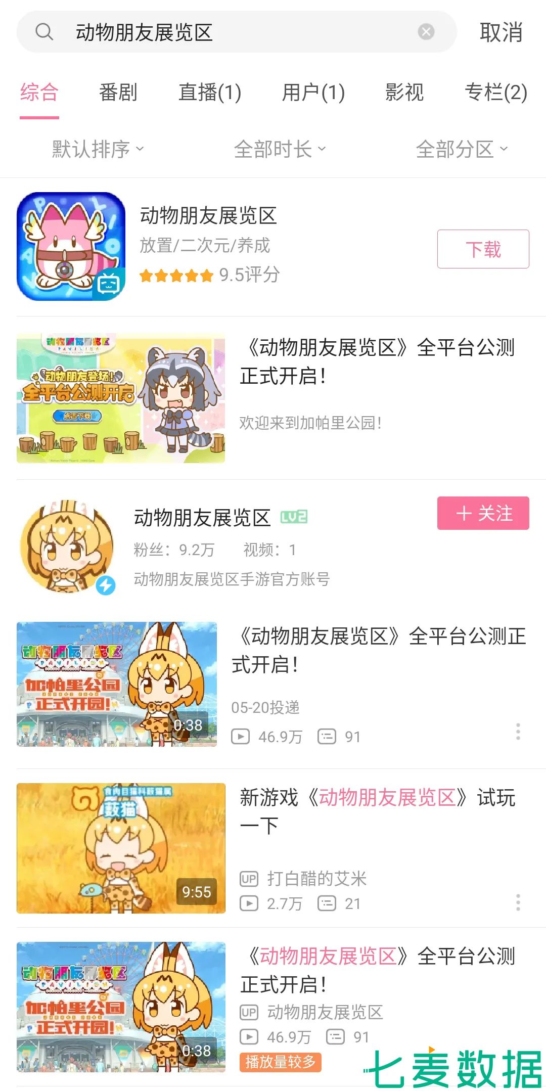 另一款由日本动画《兽娘动物园》正版授权、bilibili*代理的新游戏产品「动物朋友展览区」也在近日上线后表现出了不错的成绩。在上线当天,哔哩哔哩便在平台中对其进行了全平台公测的视频宣传推广,目前该视频累计播放量近 47 万,其官方账号也已积累超 9 万粉丝。