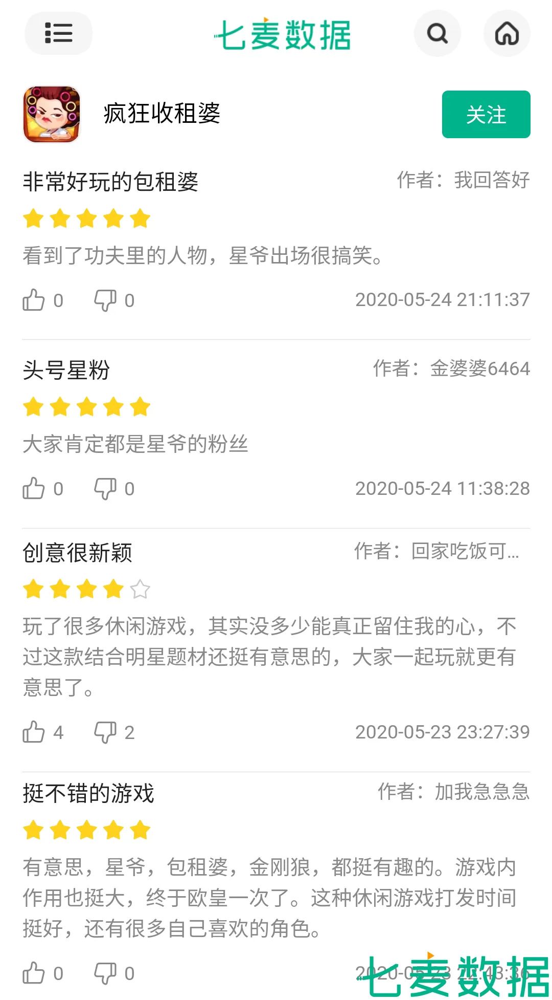 在「疯狂收租婆」游戏中,除了人物角色借用了周星驰经典电影《功夫》里包租婆的经典形象以外,在游戏中也有对电影的一些经典场景和角色对白进行还原,使产品具有了一定的话题度,在其产品评论中就出现了不少因为电影而喜爱这款产品的用户。