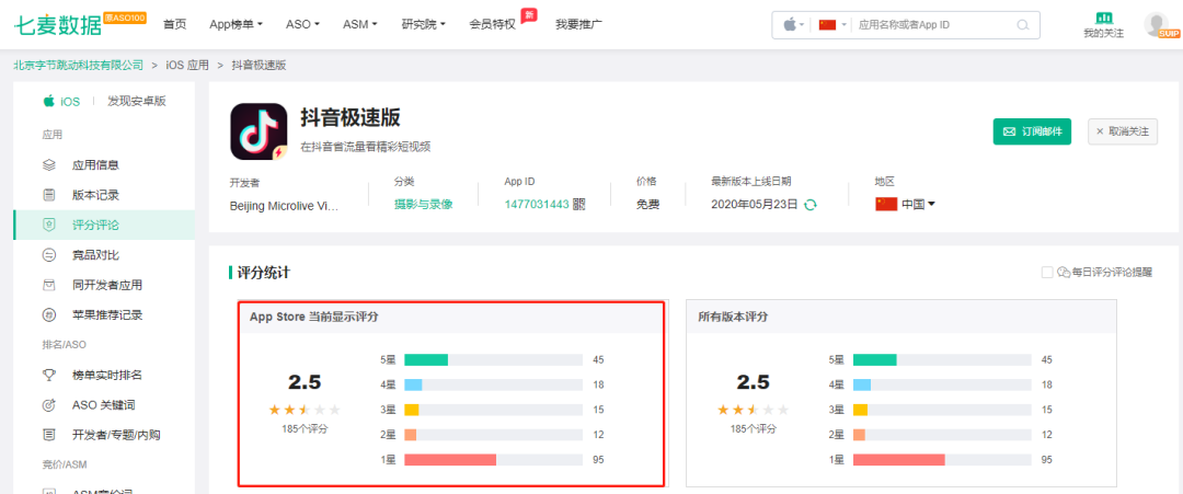 同名不同命,抖音极速版刚上线 iOS 端就被一星差评,评分仅 2.5