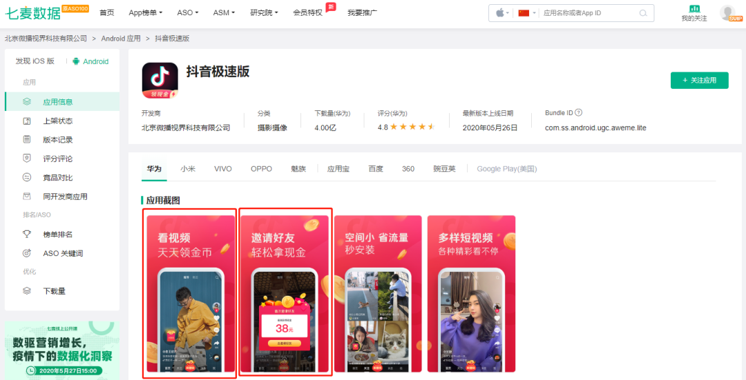 因此这款产品在上架后很短的时间里,便获得了大量用户的关注,但此时抖音极速版只在安卓端上线。