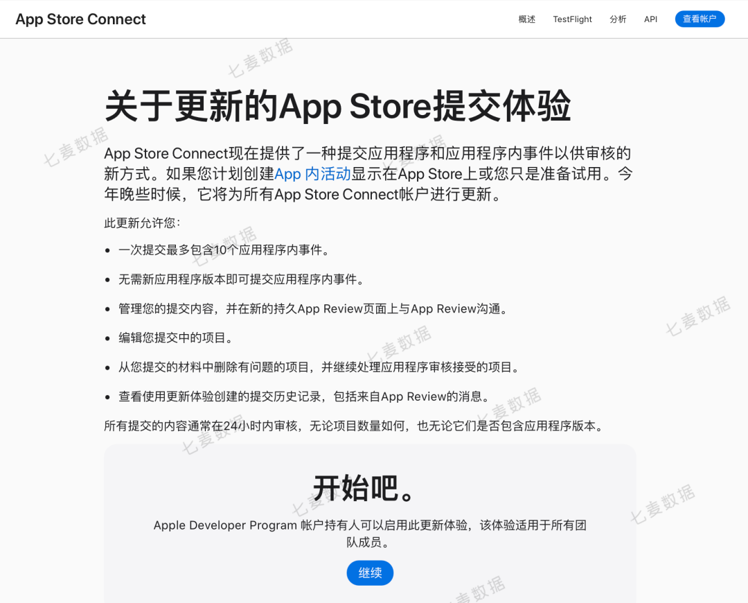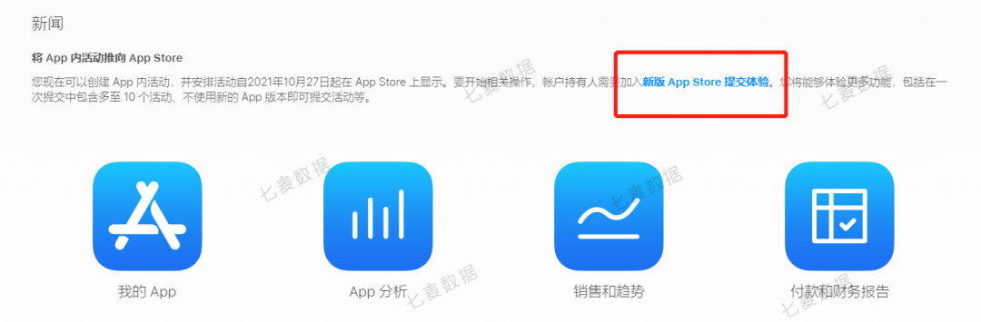 七麦研究院在测试中发现,目前需要通过iTC后台通知中的链接,申请加入体验计划,才可以获取【App内活动】的功能。(目前只有“帐户持有人”才能资格操作加入体验计划)