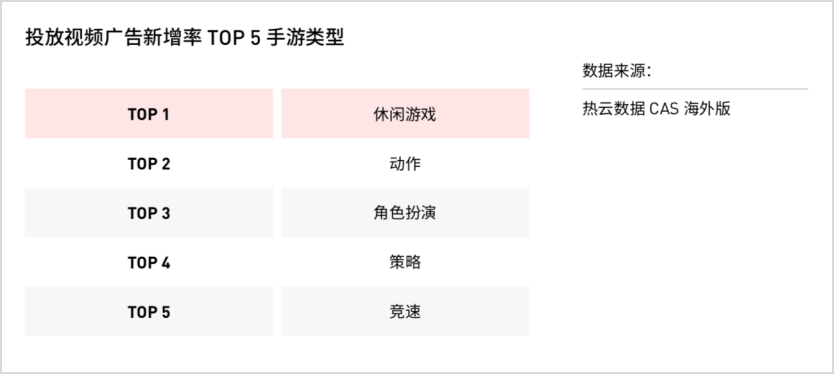 根据2022上半年买量素材的数据,虽受到整体买量新增率以及去年同比有所下滑的因素影响,但今年上半年新增的视频广告依旧数据亮眼,比例仍达80%,成为新增比例*的买量广告形式。随着*中重度买量手游的回暖,以策略与RPG代表的硬核游戏厂商,开始加快视频广告的投入与迭代,同样强势排进投放视频广告新增率Top5,同时休闲游戏的视频广告的新增率仍高居首位。