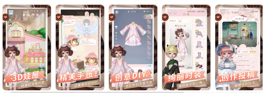 千跃网络的「箱庭小偶」则是独特的 BJD(泛指各种拥有球型关节的精致可动人偶/人形)玩法题材,游戏内有丰富可爱的小偶,风格多样的服装搭配,能充分满足玩家“云养娃”需求。