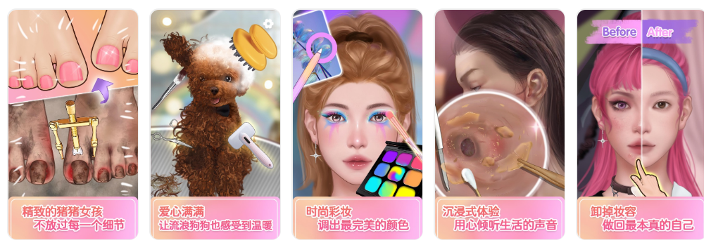 纽扣软件旗下「解压模拟器:女生沉浸式化妆生活再现小游戏」主打沉浸式体验,玩家可以化妆、照顾狗狗等,打造解压舒适生活;