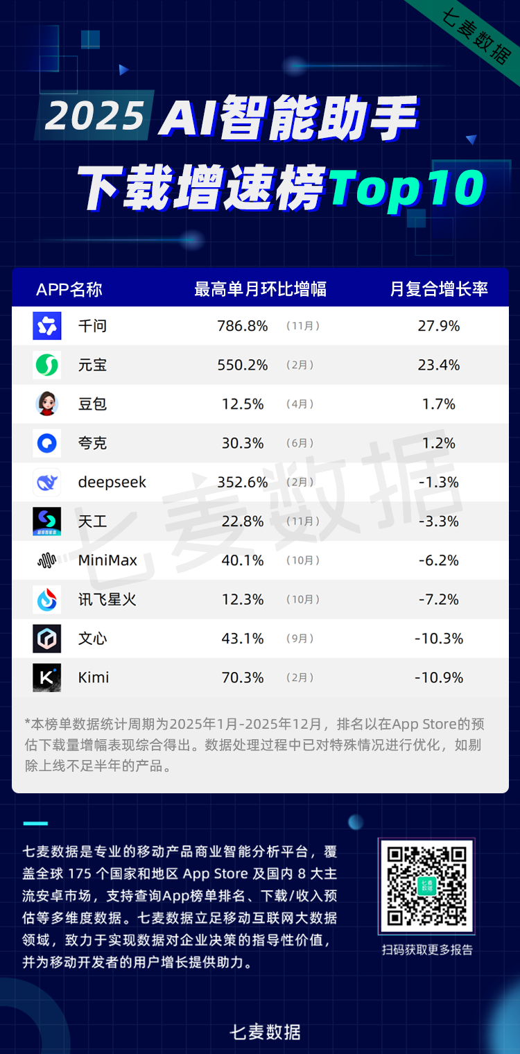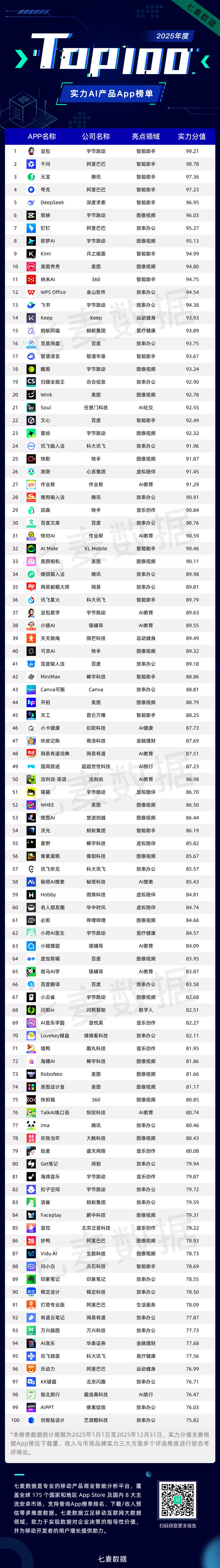 重磅发布!七麦数据《2025年度实力AI产品App榜单》来啦!快来聚焦AI领域全年趋势及实力产品全景洞察