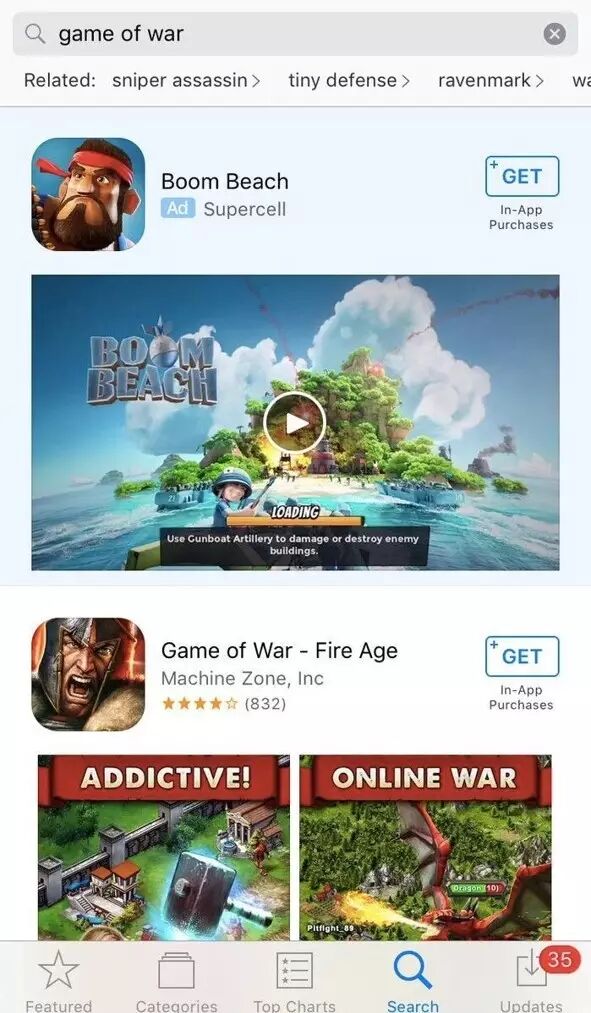 App 在搜索广告上的展示内容与其在自然搜索排名下的内容相同,开发者不必也不能单独为搜索广告设置素材,也无法选择或设置广告具体以某种方式展现。